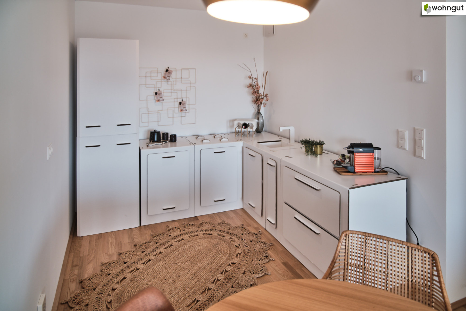 Die durchdachte Raumaufteilung schafft ideale Voraussetzungen für Paare und Jungfamilien: Eine gemütliche Wohnküche bildet den Mittelpunkt des gemeinsamen Lebens – ein Ort für entspannte Abende, gemeinsames Kochen und wertvolle Familienmomente. Zwei gut geschnittene Schlafzimmer bieten ausreichend Raum für Rückzug, Ruhe und individuelle Gestaltungsmöglichkeiten.